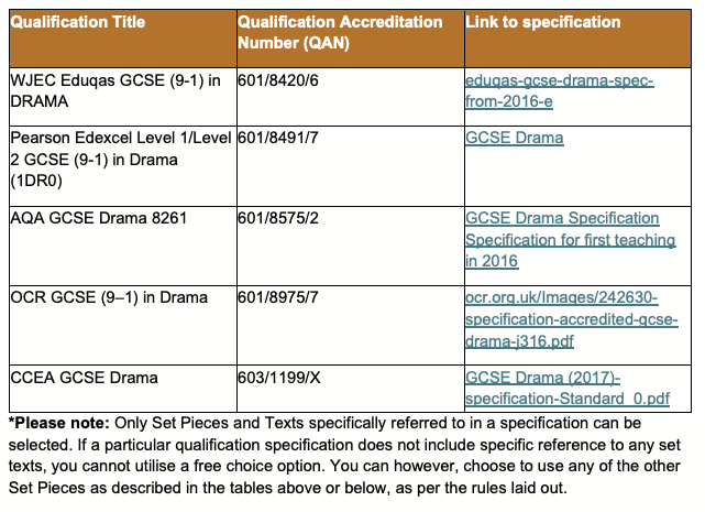 For example, if you open the first link to the WJEC Eduqas GSCE Drama Specification you find that extracts of the right length from any of these plays will now count as ‘Set Texts’ for Grade 4 or Grade 5 LAMDA Acting Exams: